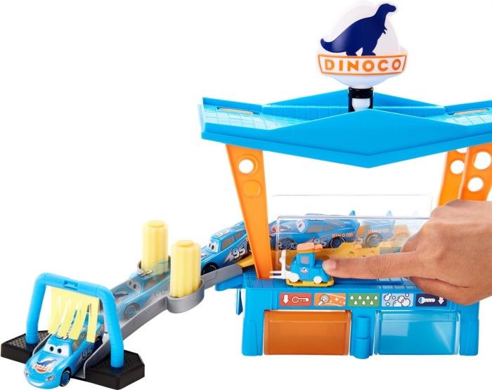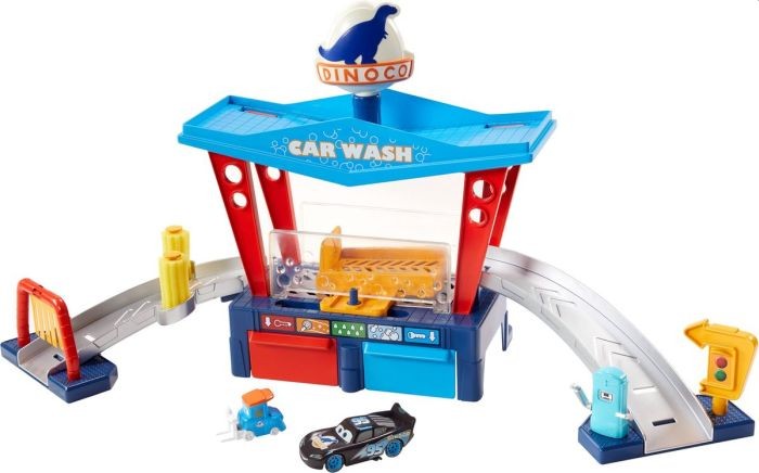 De Cars Large Color Change biedt urenlang leuk en schoon autowasplezier. Bliksem McQueen heeft na al het racen dringend een wasbeurt nodig. Knijp in het Dinoco-teken voor een kleurveranderende waterval die McQueen magisch van kleur doet veranderen. Laat hem door de wasstraat rijden, rol over het platform, door droogsponzen en herhaal het proces door hem in het koudwaterreservoir te dompelen!Kenmerken: